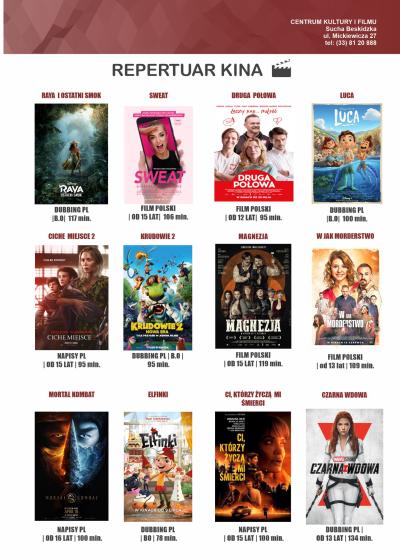 Centrum Kultury i Filmu w Suchej Beskidzkiej przygotowało na początek lata bardzo bogaty repertuar seansów filmowych. Nie brakuje w nim filmów dla najmłodszych widzów, młodzieży oraz dorosłych.