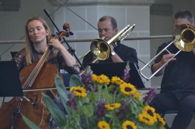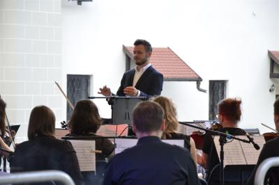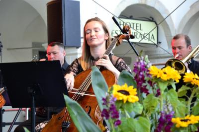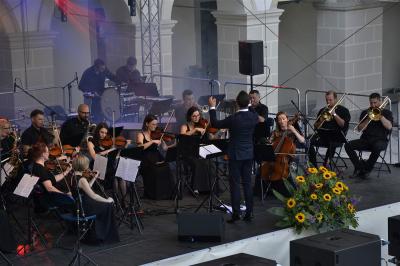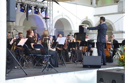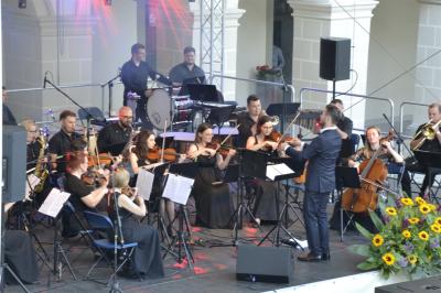 Nie ma w Suchej Beskidzkiej bardziej klimatycznego miejsca do organizacji koncertu plenerowego niż dziedziniec Małego Wawelu. W piątkowy wieczór na wtopionej w zamkowe mury scenie przed licznie zebraną publicznością zaprezentowała się Suska Orkiestra Zamkowa, którą tworzą zawodowi muzycy, będący w zdecydowanej większości również nauczycielami, uczącymi na co dzień dzieci i młodzież w powołanej w 2012 roku w Suchej Beskidzkiej Samorządowej Szkole Muzycznej I Stopnia. Orkiestra swoimi koncertami wielokrotnie uświetniała liczne wydarzenia w Suchej Beskidzkiej, prezentując za każdym razem wysoki poziom i kunszt muzyczny. W marcu koncertem muzyki filmowej zainaugurowała działalność Centrum Kultury i Filmu. Niezapomniany koncert dała również w piątkowy wieczór, ponownie sięgając po utwory stworzone specjalnie na potrzeby kina, a zaprezentowane we własnej aranżacji. Dzięki nim słuchacze mogli przenieść się w klimat produkcji kinowych i przebojów srebrnego ekranu, w których to właśnie muzyka buduje napięcie, wzrusza czy wywołuje poczucie grozy.