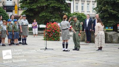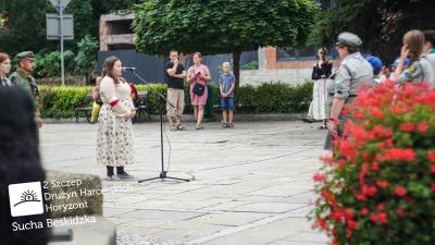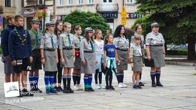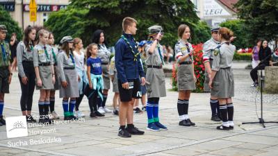 Powstanie Warszawskie było bohaterskim i ofiarnym zrywem nie tylko wojskowym, ale także ludności cywilnej przeciwko okupantowi. W tej walce w szeregach Armii Krajowej brały udział również Szare Szeregi, najliczniejsza konspiracyjna organizacja młodzieżowa. W połowie 1944 roku skupiały ponad 15 tys. harcerzy i harcerek. Ich członkowie pomagali powstańcom przenosząc meldunki, opiekując się rannymi oraz roznosząc ulotki z informacjami dla cywilów. Z tego powodu nieprzypadkowo w Suchej Beskidzkiej obchody rocznicowe są organizowane przez harcerzy z 2 Szczepu „Horyzont” z Suchej Beskidzkiej.