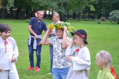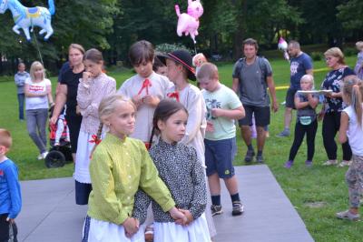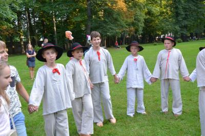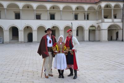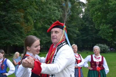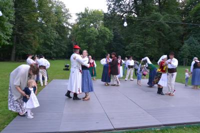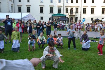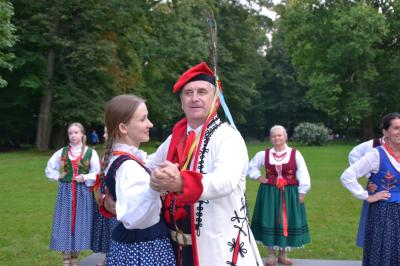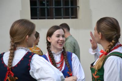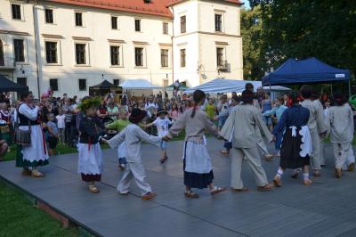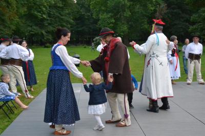 Gdy nad zamkowym parkiem zaczął z wolna zapadać wieczór dzieci i dorośli mogli nauczyć się tańców góralskich pod okiem artystów i instruktorów zespołów regionalnych działających przy Centrum Kultury i Filmu. Bardzo ciekawą prelekcję na temat góralskich i krakowskich strojów regionalnych (nie wolno ich mylić z kostiumami) wygłosił dyrektor Muzeum Miejskiego Suchej Beskidzkiej Andrzej Peć, któremu w roli modeli i zarazem ekspertów towarzyszyli mu regionalistka i zarazem śpiewaczka Filharmonii Krakowskiej Joanna Skwara i regionalista, folklorysta i akordeonista Andrzej Gugała.