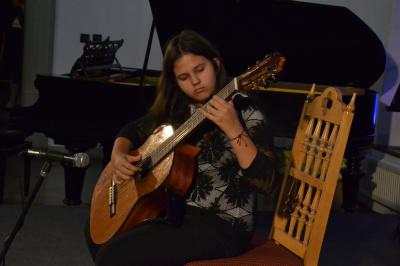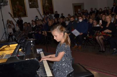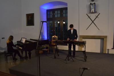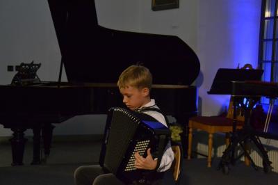 Zanim pierwszo i drugoklasiści znaleźli się w świetle reflektorów wraz gośćmi spotkania wysłuchali koncertu starszych uczniów. Znakomite występy, nagrodzone gromkimi brawami, pokazały jak dużym potencjałem i talentem dysponuje młodzież z naszego regionu, ale także jak bardzo do ich rozwinięcia się przyczyniła się nauka w Szkole Muzycznej I stopnia. Koncert rozpoczął akordeonista Krzysztof Kozieł, wykonując melodię włoską „O Mari”. Po nim zaprezentowały się fortepianistki Liliana Pater u utworze „Gaik” Witolda Lutosławskiego oraz Hanna Gądek w „Zalotnym” tego samego kompozytora, a duet Natalia i Piotr Bogdanikowie oczarowali publiczność „Małą rapsodią na temat węgierski” Denesa Agaya. Równie urzekające występy dały gitarzystka Aleksandra Szczygieł (wykonała „Habanera Caramba”) i flecistka Anna Polak, która przy akompaniamencie Adama Jastrzębskiego zagrała „Meditation”. O tym, że z przypominającego nieco rozbudowane cymbały ksylofonu można wydobyć szeroką gamę dźwięków słuchacze przekonali się za sprawą Franciszka Miętka, prezentującego się w „Nebojša” macedońskiego kompozytora Jovana Živkovića. Koncert zakończyła „Tańcem polskim” skrzypaczka Lena Bernacka.