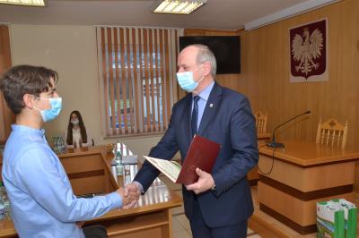 W czwartek 25 listopada przy zachowaniu wszystkich środków ostrożności Burmistrz Stanisław Lichosyt ponownie osobiście spotkał się z zawodnikami, którzy w ostatnich tygodniach sięgnęli po laury na zawodach wojewódzkich i krajowych. Gratulował im nie tylko wywalczonych medali, ale również wytrwałości i determinacji bez których zdobywanie czołowych lokat byłoby po prostu niemożliwe. Życzył przy tym zdrowia, dalszych sukcesów na imprezach coraz większej rangi.