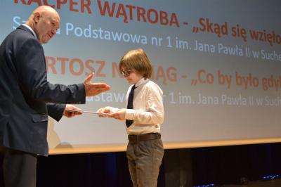 wyróżnienia: Filip Jurkiewicz (ZS w Makowie Podhalańskim) „Staszkowa historia”, Kacper Kubas (SP nr 1 Suchej Beskidzkiej) „Co by było, gdyby…”, Oliwia Kubas (SP nr 1 w Suchej Beskidzkiej) „Suski projekt wypoczynkowy”, Mateusz Sarna (SP nr 1 w Suchej Beskidzkiej) „Jak Mokra Suchą się stała”, Amelia Szczelina (SP nr 2 w Suchej Beskidzkiej) „Co by było, gdyby moje psy zmieniły się w ludzi”