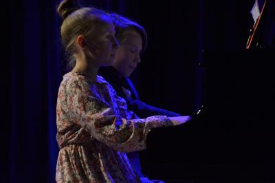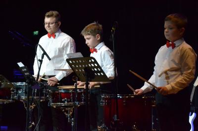 Trzygodzinne wydarzenie rozpoczął występ chóru szkolnego pod dyrekcją Katarzyny Borowiec, który przy akompaniamencie Magdaleny Chmielowskiej-Malec zaprezentował się w „Bębenku” Jana Krutula. Klasy Klasa III a i III b pod okiem Kingi Wicher przygotowały układ taneczno-ruchowy do Rock and roll’a” Elvisa Presleya. Następnie w tej części koncertu występowali soliści, duety, tria i kwartety uczniów lub uczniów z nauczycielami, demonstrując jak duże umiejętności posiadają dzieci uczęszczające do suskiej szkoły. Publiczność usłyszała takie utwory jak „Petite fleur” („Maleńki kwiatuszek”), „Amazing Grace” Johna Newtona, „Carnival in Rio”, „Romance de amor” Vincenta Gomeza, czy „Pochód karzełków” – współczesnej krakowskiej kompozytorki Janiny Garści.