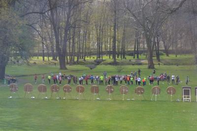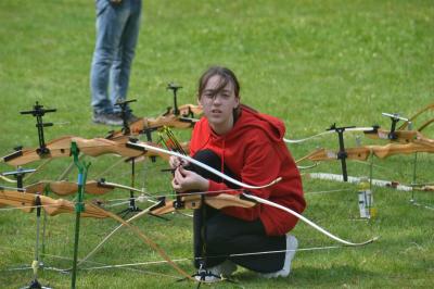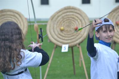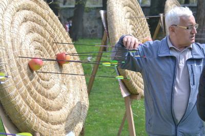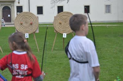 Nie ma w Suchej Beskidzkiej bardziej urokliwego miejsca na rozgrywanie turnieju łuczniczego jak przyzamkowy park. Ustawione na tle renesansowego Małego Wawelu maty z przypiętymi do nich tarczami i szpaler zawodników szyjących do celu z łuków był widokiem, który można było w poniedziałkowe przedpołudnie podziwiać przez kilka godzin. Początkowo następcy Robin Hooda mierzyli do tarcz, starając się rzecz jasna posłać strzały jak najbliżej środka. W dodatkowej konkurencji, w której wzięło udział po 10 najlepszych łuczników w każdej kategorii, trafiano do zawieszonych na sznurku jabłek. Szybko okazało się, że umieszczenie strzał w jabłku (musiały się w nie wbić) jest trudniejszym wyzwaniem niż trafienie w środek tarczy!