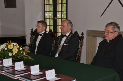 Uroczystość poprzedziła msza święta w intencji jubilatów, którą w kaplicy zamkowej odprawił proboszcz parafii pw. Nawiedzenia Najświętszej Maryi Panny w Suchej Beskidzkiej ks. Wiesław Popielarczyk. O oprawę muzyczną nabożeństwa zadbała Małgorzata Kubieniec wraz z członkami chóru „Jasień”.
