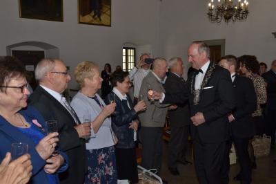 Po wręczeniu medali nadszedł moment na wzniesienie toastu lampką szampana. Uroczystość umiliła swoim występem Julia Stec, wokalistka działającego przy Centrum Kultury i Filmu ogniska muzycznego Allegro. Młoda solistka przy akompaniamencie Małgorzaty Kubieniec zaprezentowała bliskie sercu jubilatów szlagiery „Nie wierz mi” oraz „Moje jedynie marzenie” z repertuaru Anny Jantar oraz „Dwa światy” Maryli Rodowicz.