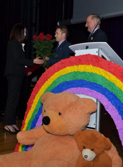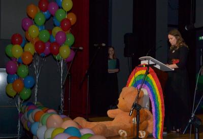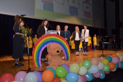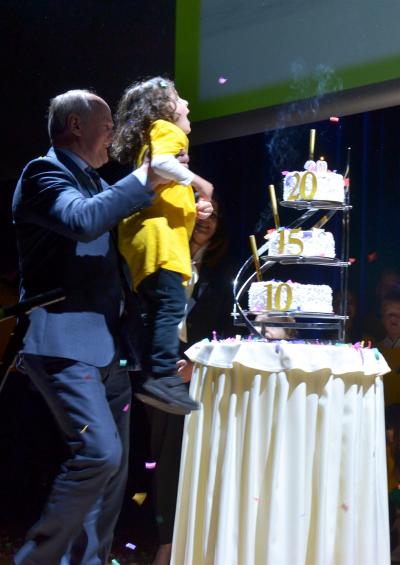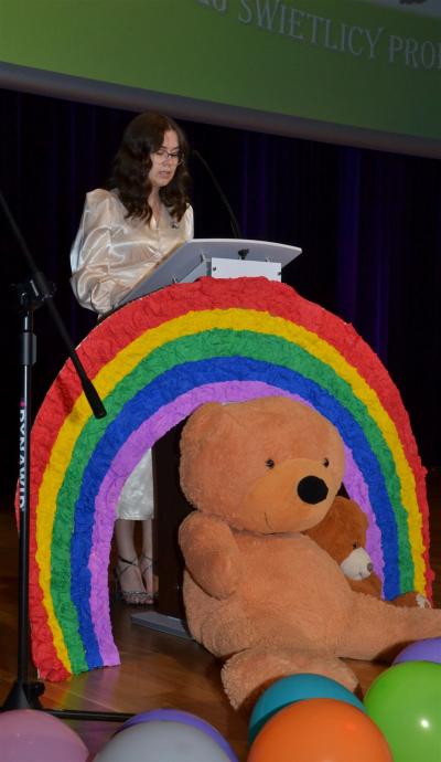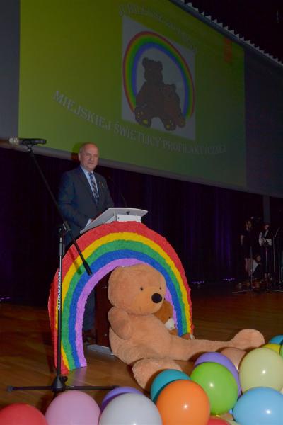 W wyjątkowy wieczór nie zabrakło także wspomnień wychowanków świetlicy oraz życzeń i podziękowań. Wiele ciepłych słów kadra świetlicy usłyszała od przedstawicieli rodziców i Burmistrza Miasta Stanisława Lichosyta. Podziękowania popłynęły także ze strony wychowawców i kierownictwa placówki do osób, które przyczyniły się do powstania Miejskiej Świetlicy Profilaktycznej i przez kolejne dwie dekady wspierały jej działalność, a w szczególności do Burmistrza Miasta, któremu podarowano oprawioną w ramkę koszulkę, co miało wymiar symboliczny. W takich samych koszulkach dzieci występowały bowiem na sceniew trakcie jubileuszu. Stanisław Lichosyt został również zaproszony przez wychowanków MŚP do zdmuchnięcia świeczek na okazałym torcie i wspólnego odśpiewania „100 lat”. Na zakończenie scena, która na tę okoliczność przyozdobiona była dziesiątkami kolorowych balonów, utonęła w wystrzelonym w powietrze konfetti.