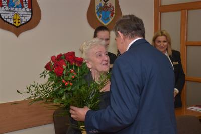 Po głosowaniu, w którym Rada Miasta jednomyślnie udzieliła burmistrzowi Stanisławowi Lichosytowi absolutorium, radni złożyli na ręce Burmistrza Miasta i Skarbnik Gminy Haliny Kozioł podziękowania oraz gratulacje.