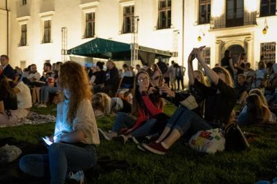 Suski przystanek na letniej trasie "Kina Pod Baranami" zgromadził na błoniach parku zamkowego ponad sto osób. Widzowie mogli wygodnie rozsiąść się na przygotowanych leżakach i krzesłach, ale również nie zabrakło osób, które zajęły miejsca na przyniesionych ze sobą kocach. Klimat wydarzenia i otoczenie miejsca idealnie skomponowało się z tematyką wyświetlonego filmu "Wielkie piękno", opisującego historię starzejącego się dziennikarza, który przemierza Rzym, wspominając utraconą młodość, pełną namiętności i intensywnych uczuć.