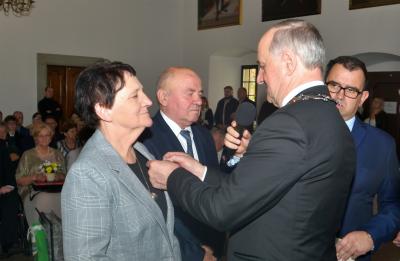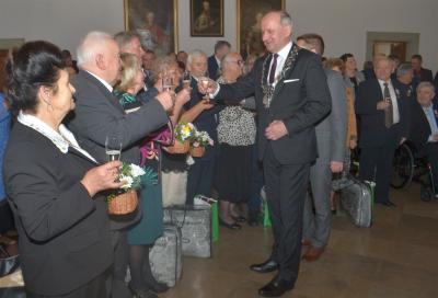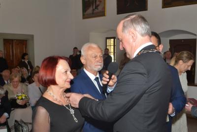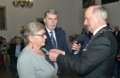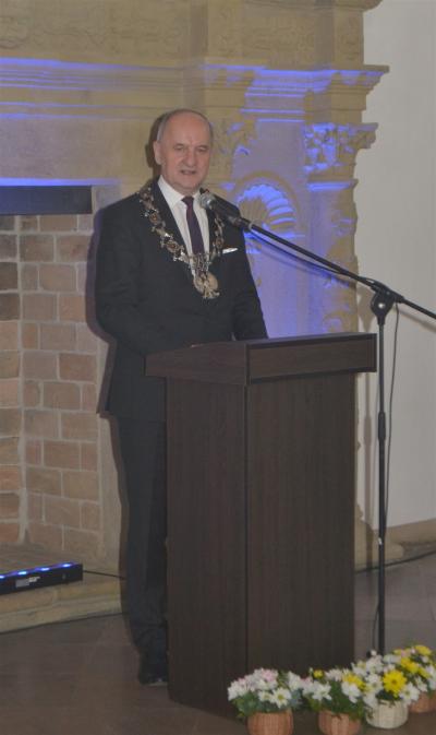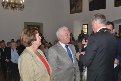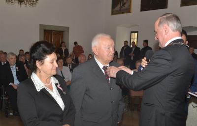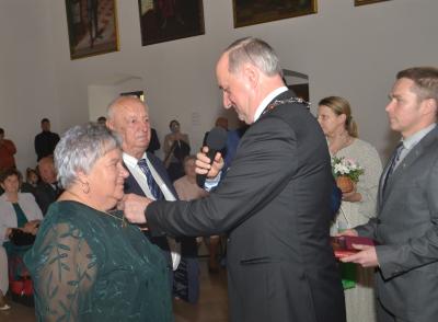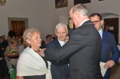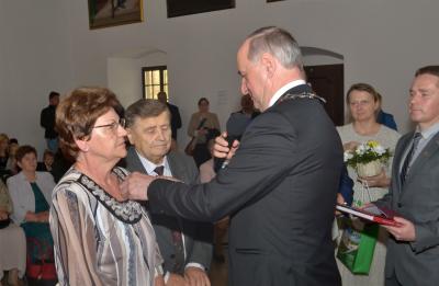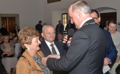 Burmistrz Miasta odznaczając jubilatów wręczył jednocześnie listy gratulacyjne i upominki od władz samorządowych. W okolicznościowym wystąpieniu podkreślił, że w życiu jubilatów zapewne nie brakowało trudnych chwil, ale ich obecność na ceremonii świadczy o tym, że nie zawiedli się na sobie i pozostali wierni małżeńskiej przysiędze. Zwracając się do nich jeszcze bardziej bezpośrednio wskazywał, że są wzorem do naśladowania dla młodszych pokoleń, pokazując im jak dzięki miłości przezwyciężać problemy oraz czym są wyrozumiałość, tolerancja oraz kompromis. Gratulując wszystkim parom jubileuszu, Stanisław Lichosyt życzył im dalszych lat w dobrym zdrowiu i dostatku.