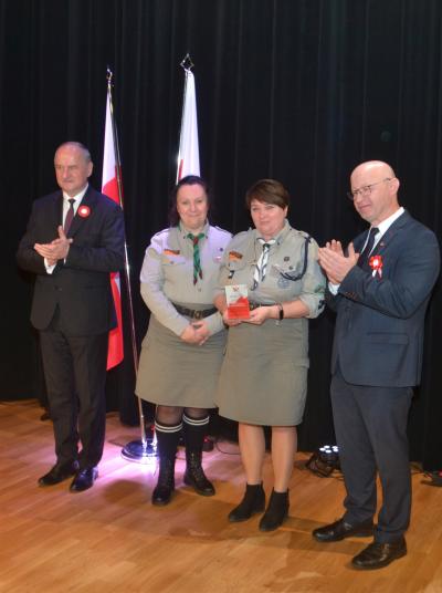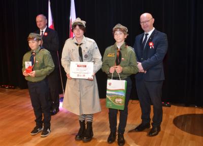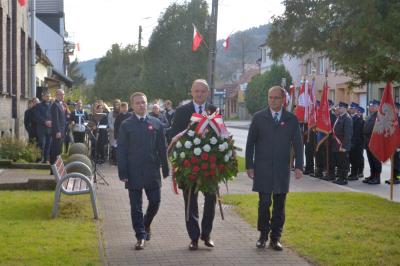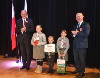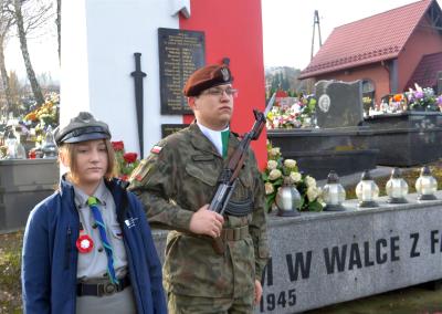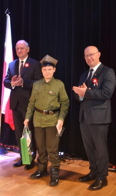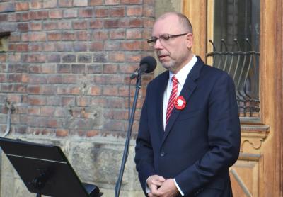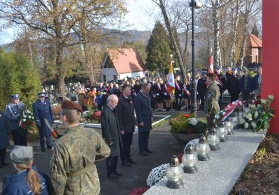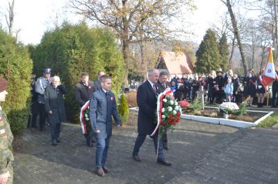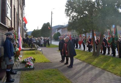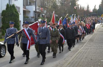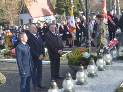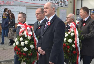 W okolicznościowym przemówieniu Burmistrz Miasta Stanisław Lichosyt nawiązał do wydarzeń z roku 1918. – Udział w dzisiejszej uroczystości jest wyrazem szacunku i wdzięczności wobec naszych rodaków, którzy walczyli o wolną, niepodległą Ojczyznę. Swoim bohaterstwem i odwagą przyczynili się do tego, że żyjemy w wolnym, niepodległym kraju. Jesteśmy im wdzięczni za to, że nigdy nie przestali wierzyć w niepodległą Polskę i pomimo różnic społeczno-politycznych potrafili 104 lata temu skutecznie wykorzystać sprzyjające okoliczności do odrodzenia polskiej państwowości – powiedział na wstępie swojego przemówienia Stanisław Lichosyt, podkreślając, że niepodległość jest dla narodu tym, czym wolność dla osoby. Zaznaczył, że tę banalną prawdę warto sobie uświadomić szczególnie mocno właśnie teraz, gdy jesteśmy świadkami dramatycznych wydarzeń za naszą wschodnia granicą i wynikających z nich zagrożeń również dla Polski. – Niewątpliwie przynależność do wspólnoty europejskiej zwiększa nasze bezpieczeństwo, ale czy na pewno je gwarantuje? Można mieć co do tego wątpliwości, gdy pomimo realnych zagrożeń ze Wschodu słychać nieodpowiedzialną retorykę niektórych ważnych polityków, a nawet rywalizację, który z nich bardziej „dokopie” naszym zachodnim sojusznikom, czyli Unii Europejskiej. Niestety nawet w obliczu zagrożeń ujawniają się nasze narodowe wady i zapominamy, że na straży niepodległości stoi mądra i rozważna dyplomacja. Ciągle zbyt mało popularne jest wybieranie drogi między skrajnościami, czyli np. takiej, aby zamiast walczyć z Unią lub jej wewnętrznymi zwolennikami zawalczyć o lepszą pozycję Polski w całej Unii. Nie dla własnej korzyści lub korzyści swojej formacji politycznej, lecz przede wszystkim dla bezpieczeństwa naszej Ojczyzny i jej faktycznej suwerenności – dzielił się swoimi refleksjami burmistrz. Życzył wszystkim, abyśmy jednoczyli się w osiąganiu celu wspólnot i mądrze korzystali z daru wolności, aby nasz kraj był bezpieczny i mógł się stabilnie rozwijać. – Realizując te cele, mamy szansę spłacenia długu wobec pokoleń Polaków, które o Niepodległą walczyły i za nią oddawały życie – mówił burmistrz Stanisław Lichosyt.