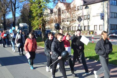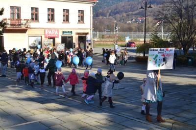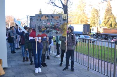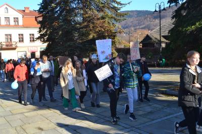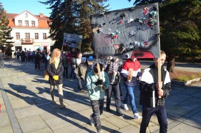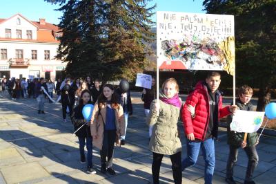 Zorganizowana w ramach Dnia Czystego Powietrza akcja miała właśnie na celu uświadomić mieszkańcom naszego miasta jak poważne konsekwencje niesie za sobą oddychanie zanieczyszczonym powietrzem. W trakcie przemarszu spod Centrum Kultury i Filmu na miejski rynek uczniowie wznosili okrzyk „Nie pal śmieci – Nie truj dzieci”. Na własnoręcznie przygotowanych transparentach umieścili jeszcze inne hasła takie jak: „Kochasz dzieci? Nie pal śmieci”, „Smog albo zdrowie”, „Ratujmy czyste powietrze! Ratujmy siebie!”, „Palisz śmieci w kominie, surowa kara cię nie ominie”, które warto wziąć sobie do serca. Astma oskrzelowa, alergie, a w dalszej perspektywie choroby nowotworowe są ceną jaką przyjdzie nam zapłacić za brak troski o powietrze, którym oddychamy. Koszty leczenia są przy tym wielokrotnie wyższe od pozornych oszczędności osiąganych poprzez palenie złej jakości paliwem lub śmieciami. Bywa niestety i tak, że cena za naszą nieodpowiedzialność jest najwyższa. Tyle tylko, że paląc śmieciami „rachunek” wystawiamy nie tylko sobie, ale także sąsiadom i innym mieszkańcom miasta i powiatu, bo powietrze nie zna granic.