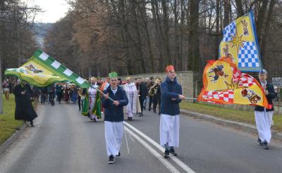 W Suchej Beskidzkiej przejście Orszaku Trzech Króli odbyło się już po raz ósmy. To piękna miejska tradycja, dzięki której każdego roku mieszkańcy mają możliwość w rodzinny i radosny sposób uczcić ten świąteczny dzień. Obchody uroczystości Objawienia Pańskiego rozpoczęły się mszą świętą w kościele parafialnym, uświetnioną muzyczną oprawą przez Chór „Jasień” oraz muzyków regionalnych „Ziemi Suskiej”. Po nabożeństwie mieszkańcy miasta przemaszerowali ulicami miasta na zamkowy dziedziniec. W barwnym korowodzie Trzem Mędrcom ze Wschodu towarzyszyły dzieci, młodzież i dorośli. Podobnie jak w minionych latach głowy uczestników orszaku były przyozdobione koronami, które wraz ze śpiewnikami przygotowali organizatorzy uroczystości - Parafia Nawiedzenia Najświętszej Maryi Panny, Burmistrz Miasta Sucha Beskidzka oraz Centrum Kultury i Filmu.