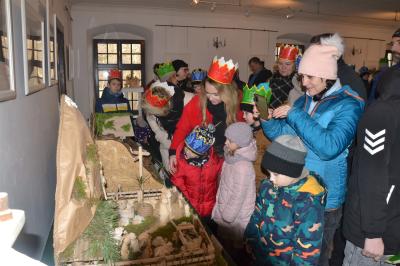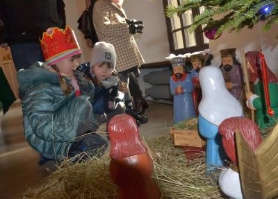 Po zakończeniu wspólnego kolędowania wiele osób zdecydowało się pozostać na terenie zespołu zamkowo-parkowego. Z zainteresowaniem zwiedziło prezentowaną w Galerii Sztuki – Zamek wystawę czasową „Tam, gdzie zdarzył się cud. Szopki Bożonarodzeniowe Józefa i Karola Lasików”. Szczególnie duże wrażenie zrobiła ona na najmłodszych, którzy z zaciekawieniem przyglądali się figurkom przedstawiającym Józefa, Maryję, pasterzy strzegących swoich stad.