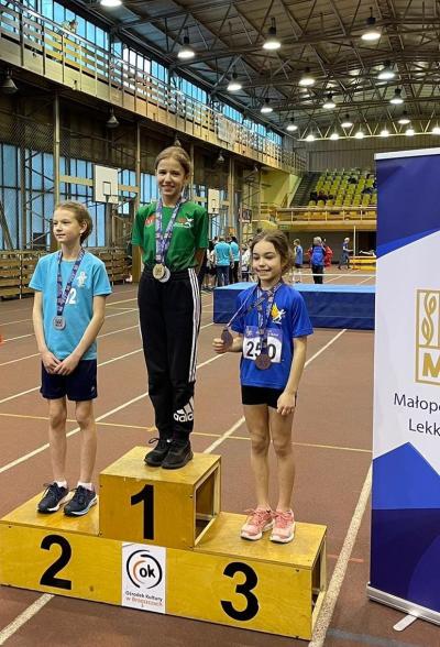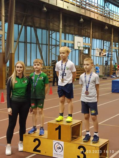 Podwójnym mistrzem województwa został Bruno Długosz (U12), który zwyciężył zarówno w konkursie skoku w dal, jak i w biegu na 60 metrów. Trzeci złoty medal do klubowej kolekcji dołożyła Julia Balcer (U12), wygrywając bieg na 60 metrów. Tuż za jej plecami finiszowała Julia Ferdek, która poza srebrnym medalem zdobytym w tej konkurencji wywalczyła również złoty medal w skoku w dal. Z dwoma srebrnymi krążkami wrócił do domu Nikodem Kołodziej, który w kategorii U10 nie miał sobie równych zarówno w skoku w dal, jak i biegu na 60 metrów. Natomiast brązowy medal padł łupem Sabiny Basiury (U14), która zajęła trzecie miejsce w konkursie skoku wzwyż.