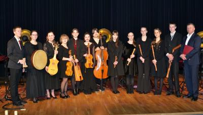 Zespół Muzyki Dawnej im. Gaspara Castiglione jest zespołem instrumentalno-wokalnym, który powstał w maju 1997 r. w Miejskim Ośrodku Kultury – Zamek w Suchej Beskidzkiej (obecnie Centrum Kultury i Filmu). Członkami są dzieci i młodzież suskich szkół, którzy koncertują w kostiumach wykonanych na wzór oryginalnych renesansowych strojów dworskich. W repertuarze zespołu znajdują się muzyka, pieśni i tańce dworskie XIV-XVII wiecznej Europy. W trakcie przedświątecznego koncertu artyści pracujący pod kierownictwem Agnieszki Bernackiej wystąpili ubrani współcześnie, lecz co zrozumiałe, pozostali przy tradycyjnym instrumentarium. W przejmujący sposób wykonali średniowieczne i renesansowe pieśni pasyjne, kancjonały oraz ludowe i tradycyjne pieśni wielkopostne. Całość występu została wzbogacona poezją księdza Jana Twardowskiego w interpretacji Jacka Jarocha. Pogrążona w zadumie, wewnętrznych rozważaniach i z wyraźnie rysującymi się na twarzach emocjami publiczność wysłuchała między innymi XVI i XVII-wiecznych pieśni „Wszyscy mieszkańcy dworu niebieskiego”, „Z głębokości grzechów moich psalm CXXIX”, „Boże litościwy psalm LXIV”, „XVII-wiecznych „Gorzkich żali”, jak i nieco później napisanych „Płaczcie Anieli” ze śpiewnika kościelnego Michała Marcina Mioduszewskiego wydanego już w 1838 roku i „Króla wznoszą się znamiona”.