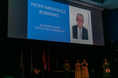 22 lutego br., w uznaniu wybitnej działalności na rzecz nawiązania i utrzymania relacji miast partnerskich oraz pracę wykonaną na rzecz rozwoju współpracy między miastami”, Rada Miasta Jászberény przyznała Panu Piotrowi Kubieńcowi tytuł Honorowego Obywatela Miasta Jászberény. Uroczystego wręczenia medalu, będącego dowodem przyznanego tytułu, w Sali Widowiskowej budynku Filmu i Teatru im. Lehela dokonał 2 kwietnia Burmistrz Lóránt Budai. W tym podniosłym wydarzeniu wzięła udział oficjalna delegacja Miasta Sucha Beskidzka z Burmistrzem Miasta Stanisławem Lichosytem na czele, który tytuł Honorowego Obywatela Miasta Jászberény otrzymał w kwietniu 2017 roku.