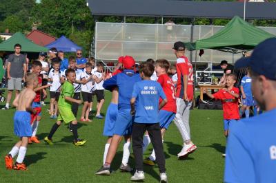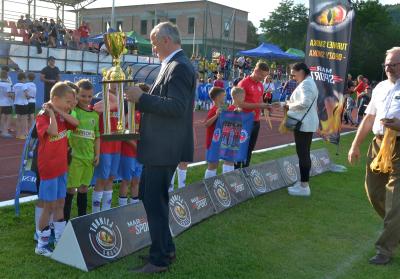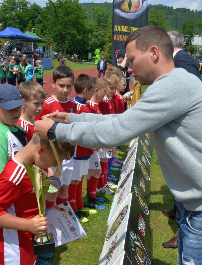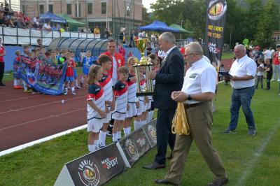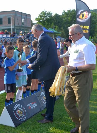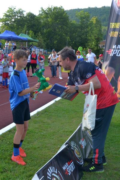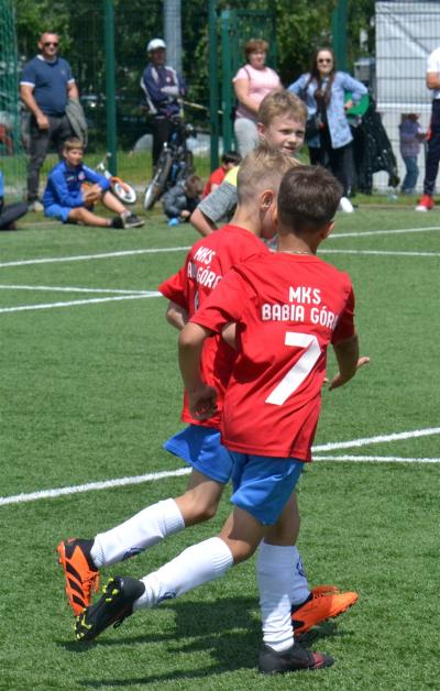 W sobotę młodzi piłkarze i piłkarki rywalizowali w czterech siedmiodrużynowych grupach eliminacyjnych. Na podstawie uzyskanych wyników wyłoniono składy najmocniejszej Ligi Mistrzów i kolejno Ligi Europy, Ligi Polski i Pucharu Polski. Spotkania w nich odbyły się już w niedzielę i towarzyszyły im bardzo duże emocje, ale też żywiołowy doping kibiców. Co oczywiste, na najgłośniejszy mogli liczyć gospodarze turnieju, którzy wystawili do niego dwa zespoły. Przed południem zawodnicy Babiej Góry niebieskiej wznieśli okazały puchar za wywalczenie drugiego miejsca w Pucharze Polski. Po południu w Lidze Mistrzów wybornie poradziła sobie Babia Góra (czerwona). Co prawda w meczu otwarcia uległa nieoczekiwanie, bo pierwszy raz w tym sezonie KS Zakopane, a w kolejnych sięgnęła po komplet pięciu zwycięstw, zostając bezapelacyjnie najlepszym zespołem Turnieju Smoka „Babia Góra Cup”, a Jakub Zielonka z dorobkiem 15 bramek sięgnął po tytuł króla strzelców i -co zrozumiałe- został wybrany do siódemki najlepszych zawodników całych zawodów, w której znalazł się jeszcze inny reprezentant suskiego klubu – Piotr Kąkol.