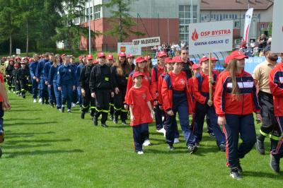 Odbywające się w znakomitych warunkach atmosferycznych zawody rozpoczęły się uroczystą prezentacją drużyn biorących w niej udział. Przed licznie zebraną publicznością przemaszerowało 19 zespołów żeńskich i 20 męskich. Zgodnie z regulaminem każdy powiat miał prawo wystawienia po jednej drużynie męskiej i żeńskiej, a ponadto powiat suski jako gospodarz mógł (i z takiej możliwości skorzystał) zgłosić po jednej dodatkowej drużynie w każdej kategorii. Taki sam przywilej przysługuje powiatom, którego reprezentacje bronią tytułów mistrzowskich.
