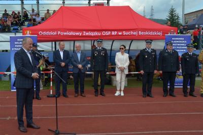 Przybyłych zawodników powitali, życząc zarazem sukcesu Burmistrz Miasta Stanisław Lichosyt, Starosta Suski Józef Bałos, sekretarz stanu w Ministerstwie Klimatu i Środowiska, prezes Zarządu Oddziału Wojewódzkiego ZOSP RP w Małopolsce Edward Siarka oraz zastępca Małopolskiego Komendanta Wojewódzkiego PSP st. bryg. Paweł Żaba.