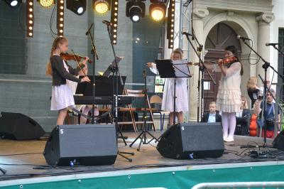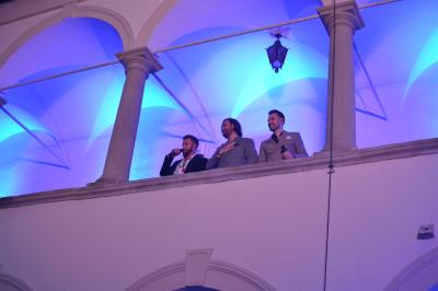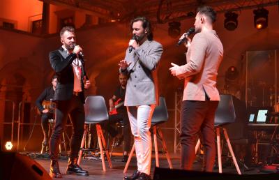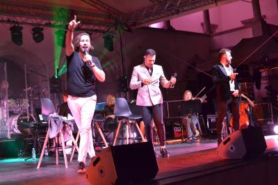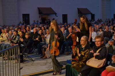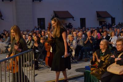 Podobnie jak w sobotę, tak i w niedzielny wieczór bawiący się zostali zaproszeni na zamkowy dziedziniec. Znakomity koncert dała na nim Suska Orkiestra Zamkowa, którą tworzą zawodowi muzycy, w większości nauczyciele powołanej w 2012 roku samorządowej Szkoły Muzycznej I Stopnia. Wydarzeniem wieczoru był występ Tre Voci, trzech utalentowanych tenorów nowej generacji - Wojciecha Sokolnickiego, Mikołaja Adamczaka i Miłosza Gałaja. Klasyczne dzieła we współczesnej aranżacji, wykonane w malowniczej scenerii zamkowego dziedzińca i wyeksponowanych dzięki profesjonalnej iluminacji krużganków wybrzmiały w sposób wyjątkowy, a artyści po każdym utworze byli długo oklaskiwani. W pamięci przybyłych w szczególnosci pozostanie „Alleluja”, gdy zauroczona publiczność rozświetliła dziedziniec latarkami telefonów komórkowych, tworząc wyjątkową atmosferę.