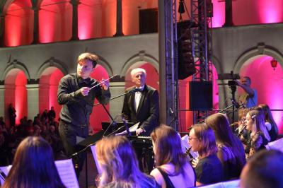 Wydarzeniem sobotniego wieczoru, które poprzedziło jeszcze kuratorskie zwiedzanie wystawy pn. „Suskie fascynacje Kinem” prezentowanej w Muzeum Miejskim, był koncert muzyki filmowej w wykonaniu Miejskiej Orkiestry Dętej. W jego pierwszej odsłonie muzycy wystąpili pod batutą Sławomira Pacholskiego, zachwycając publiczność, a zarazem budując napięcie przed kulminacyjnym momentem całego Festiwalu. W finałowej części orkiestrę poprowadził sam Krzesimir Dębski, a muzycy pod jego batutą w brawurowy sposób wykonali utwory napisane przez tego wybitnego kompozytora do filmów i seriali telewizyjnych, wzbogacone o występy solistów - Natalii Kruźlak i Kamila Kołodziejczyka. Długa owacja na stojąco po zakończonym koncercie jaką publiczność nagrodziła artystów była najlepszym dowodem jak dużych doznań dostarczył występ.
