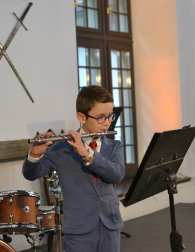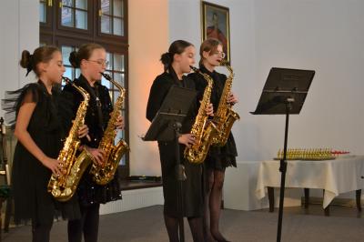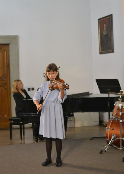 Zanim pierwszoklasiści znaleźli się w świetle reflektorów wraz gośćmi spotkania wysłuchali koncertu starszych uczniów. Znakomite występy, nagrodzone gromkimi brawami, pokazały jak dużym potencjałem i talentem dysponuje młodzież z naszego regionu, ale także jak bardzo do ich rozwinięcia się przyczyniła się nauka w Szkole Muzycznej I stopnia. Koncert rozpoczęła fortepianistka Liliana Pater, wykonując „temat miłosny z filmu Dracula” autorstwa Wojciecha Kilara. Po niej zaprezentowali się skrzypaczka Hanna Danielewicz w utworze „Wspomnienie” Ewy Iwan oraz gitarzysta Przemysław Tkaczyk, który zagrał „Cancion” Marca Andesa. W dalszej części koncertu publiczność wysłuchała „Melodii węgierskiej” w wykonaniu akordeonisty Krzysztofa Kozieła, „Romansu dla Estery” zagranego przez flecistkę Dominikę Kosek oraz „Simple song”, w którym zaprezentował się kwartet saksofonowy Wiktoria Dędys, Natalia Chwała, Sandra Gołuszka, Alicja Talaga. Część artystyczną zakończył występ trio Marcel Gwiżdż (perkusja), Kacper Mędrala (fortepian), Krystian Kurek (saksofon), który brawurowało wykonał „Cantaloupe Island” z repertuaru Harbie Hancocka.