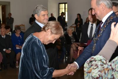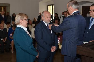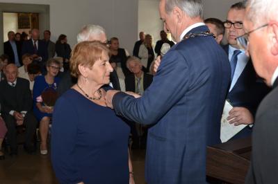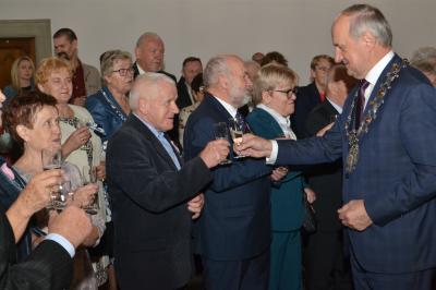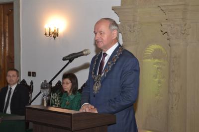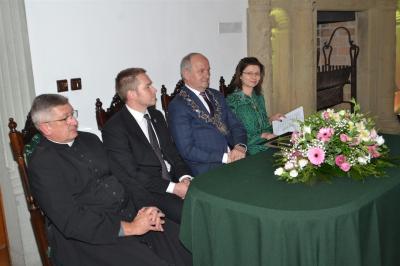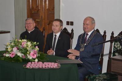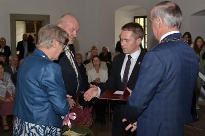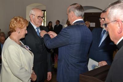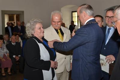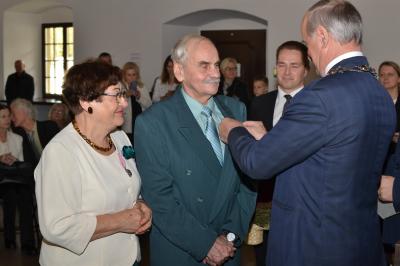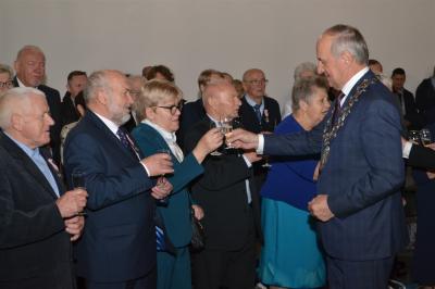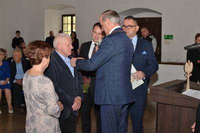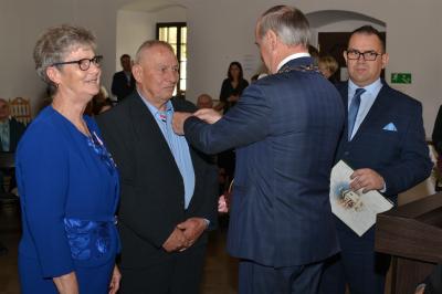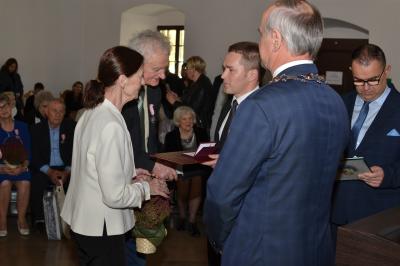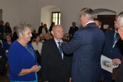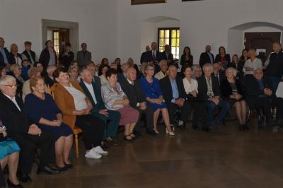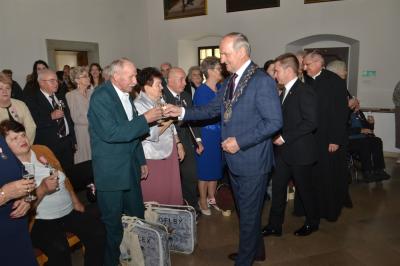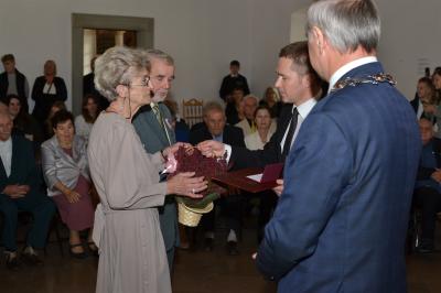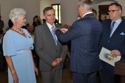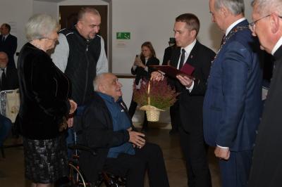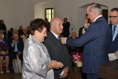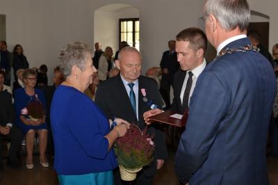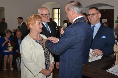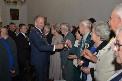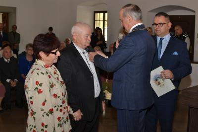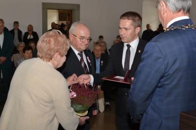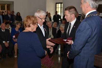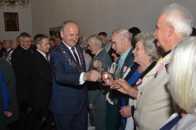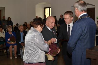 Burmistrz Miasta odznaczając jubilatów wręczył jednocześnie listy gratulacyjne i upominki od władz samorządowych. W okolicznościowym wystąpieniu podkreślił, że w życiu jubilatów zapewne nie brakowało trudnych chwil, ale ich obecność na ceremonii świadczy o tym, że nie zawiedli się na sobie i pozostali wierni małżeńskiej przysiędze. Zwracając się do nich jeszcze bardziej bezpośrednio wskazywał, że są wzorem do naśladowania dla młodszych pokoleń, pokazując im jak dzięki miłości przezwyciężać problemy oraz czym są wyrozumiałość, tolerancja oraz kompromis. Gratulując wszystkim parom jubileuszu, Stanisław Lichosyt życzył im dalszych lat w dobrym zdrowiu i dostatku. Podobnie jak Burmistrz Miasta, tak przewodniczący Rady Miasta Krystian Krzeszowiak podziękował jubilatom za dawanie kolejnym pokoleniom przykładu jak przezwyciężać trudności, ale i dzielić się miłością i szczęściem przez ponad połowę życia przeciętnego człowieka.