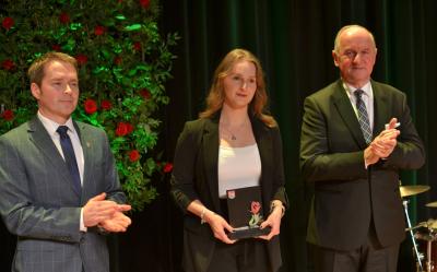 Podczas tegorocznej gali Burmistrz Miasta Stanisław Lichosyt oraz Przewodniczący Rady Miasta Krystian Krzeszowiak wręczając Pąsowe Róże podziękowali darczyńcom, którzy wspierali miejskie inicjatywy kulturalne zarówno w roku bieżącym, jak i w 2022 roku. W tym roku samorząd miejski przyznał pięć Złotych Róż oraz 47 Pąsowych Róż, będących także wyrazem wdzięczności za okazaną pomoc. W sposób szczególny za wieloletnią współpracę z samorządem miejskim podziękowano Panu Bogusławowi Kołodziejczykowi, właścicielowi firmy Kobeton.