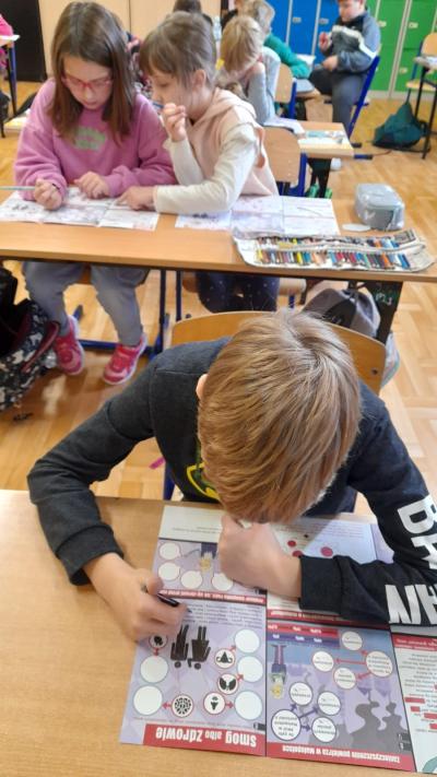 Podobnie, jak w Szkole Podstawowej nr 1, tak w Szkole Podstawowej nr 2 i jej Filii podczas godzin wychowawczych i innych lekcji uczniowie realizowali zajęcia według scenariuszy ze strony https://smog.edu.pl, skierowanych do uczniów w poszczególnych przedziałach wiekowych. Dzieci i młodzież bardzo chętnie wypełniali karty pracy, utrwalając posiadaną wiedzę i zdobywając nowe wiadomości. Ponadto uczniowie Filii wykonali prace plastyczne pod hasłem „Nie pal śmieci".