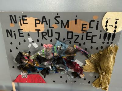 Zajęcia dotyczące jakości powietrza pod hasłem „Czyste powietrze wokół nas” odbyły się natomiast w Miejskim Przedszkolu Samorządowym i wzięły w nich udział dzieci w wieku 4-6 lat. Dowiedziały się czym nie wolno palić w piecach, co zanieczyszcza powietrze oraz jak dbać o jego jakość. Przedszkolaki wraz z wychowawcami wybrały się też na spacer ulicami miasta, aby zaobserwować skąd wydobywa się dym. Dzieci uważnie rozglądały się i żywo reagowały na każde zauważone źródło zanieczyszczenia powietrza. Po powrocie ze spaceru, każde dziecko miało pokolorować wybrany przez siebie obrazek dotyczący szkodliwości smogu. Wychowawcy odbyli przy tym z podopiecznymi pogadankę na temat jak każdy z nas powinien dbać o czystość powietrza. Na koniec zajęć wspólnie z dziećmi wykonali plakat „Dbamy o czyste powietrze”.