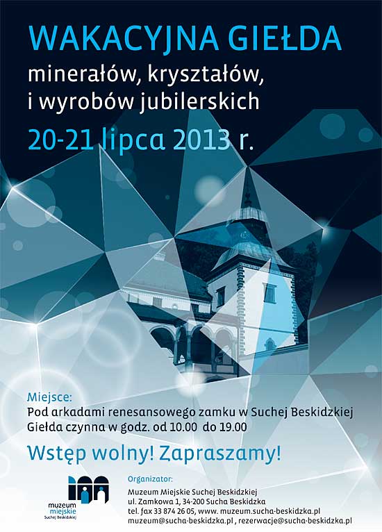 Muzeum Miejskie zaprasza na wakacyjną giełdę minerałów, kryształów, skamielin i wyrobów jubilerskich, która odbędzie się w dniach 20 i 21 lipca pod arkadami renesansowego zamku w Suchej Beskidzkiej.