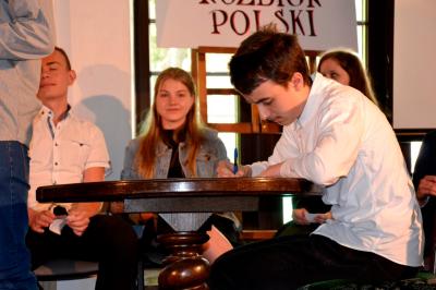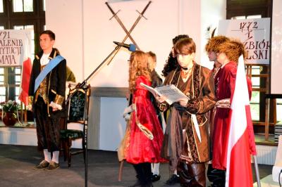W pierwszym etapie konkursu każda szkoła przeprowadzała eliminacje. W gimnazjum w Suchej Beskidzkiej swoich sił spróbowało 55 uczniów, 20 z nich przeszło do etapu gminnego. Do finału głównego zakwalifikowały się trzy osoby z suskiej szkoły. W finałowych zmaganiach w dniu 25 kwietnia br. w Sali Rycerskiej suskiego zamku rywalizowało 60 uczniów z całego regionu SGB oraz Združenia Babia Hora w dwóch etapach (pisemnym i ustnym).  Zwycięzcą tegorocznego konkursu został uczeń suskiego gimnazjum. Najlepsi uczniowie otrzymali nagrody rzeczowe i dyplomy  ufundowane przez Burmistrza Miasta Sucha Beskidzka, Babiogórski Park Narodowy, Stowarzyszenie Gmin Babiogórskich oraz instytucje współpracujące, natomiast wszyscy uczestnicy album książkowy – Sucha Beskidzka Portret Miasta. Dodatkowo  finaliści wezmą udział w wycieczce do Zamościa i Łańcuta. Podczas konkursu na suskim zamku wystąpił Zespół Muzyki Dawnej, Orkiestra Dęta Szkoły Muzycznej  I stopnia w Suchej Beskidzkiej oraz uczniowie szkoły Podstawowej Nr 1 i gimnazjaliści w świetnie przygotowanej i poruszającej inscenizacji o tematyce patriotycznej, nawiązującej do uchwalenia Konstytucji 3 Maja, zakończonej wspaniale wykonanym tańcem – Polonezem w pięknych strojach z tamtych czasów. Burmistrz Miasta Sucha Beskidzka oraz Zarząd Stowarzyszenia Gmin Babiogórskich serdecznie gratulują Laureatom konkursu, a uczestnikom wycieczki życzą miłego pobytu,  odpoczynku i samych pozytywnych wrażeń.