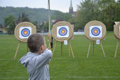 W tym samym czasie przygodę rozpoczęli miłośnicy łucznictwa, na miejskim stadionie sportowym odbywał się XVIII Turniej Łuczniczy Robin Hooda. Łucznicy rywalizowali w kilku kategoriach oraz w konkursie strzelania do jabłek. Widowiskowe zawody z trybun stadionu mogli obserwować przybyli widzowie, którzy przyglądali się wyczynom przyszłych następców Mistrzyni Europy – Natalii Leśniak. Warto wspomnieć, że zawodniczka ŁTS “Zamek Suski” właśnie w Suchej Beskidzkiej stawiała pierwsze kroki w łucznictwie.