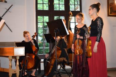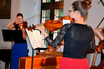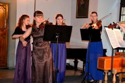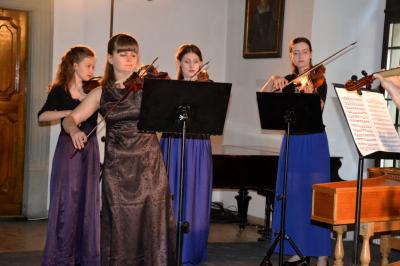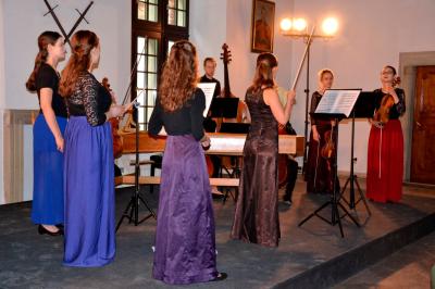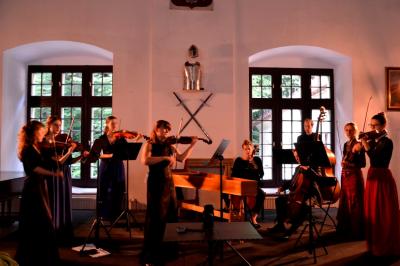 Orkiestra Barokowa Akademii Muzycznej powołana została przez Rektora Akademii Muzycznej w Krakowie w 2008 roku. Głównym założeniem tego typu zespołów jest wykonywanie muzyki dawnej w sposób zbliżony najbardziej jak to możliwe do tego, jak mogła ona brzmieć przed wiekami. Jedną z podstawowych cech charakterystycznych dla orkiestry barokowej jest użycie instrumentów historycznych. Instrumenty te posiadają szereg cech, które odróżniają je od ich współczesnych odpowiedników. W przypadku instrumentów smyczkowych najbardziej istotną różnicą jest użycie strun jelitowych. Brzmienie takich strun różni się znacznie od dźwięku strun metalowych – ich dźwięk jest łagodniejszy, mniej przenikliwy, o cieplejszej barwie. Natomiast wada to m. in. gorsza stabilność stroju, wymagane jest częste strojenie, zwykle co kilkanaście minut – o czym mogła się przekonać publiczność podczas piątkowego koncertu. Mimo tej niedoskonałości, brzmienie strun jelitowych jest w muzyce dawnej niezastąpione i idealnie pasuje do muzyki baroku, która zabrzmiała na suskim zamku.