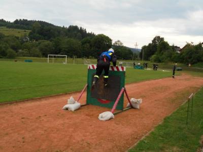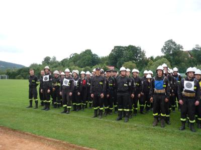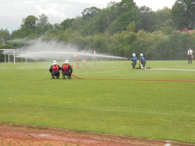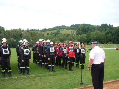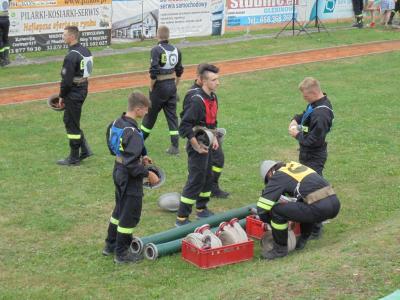 Pierwszą z rozegranych konkurencji była sztafeta pożarnicza 7x50. Każdy druh musiał przebiec 50 metrowy odcinek bieżni i przekazać pałeczkę kolejnemu koledze z teamu. Po drodze strażacy musieli jeszcze pokonać postawioną na torze biegu przeszkodę (płotek, ścianka i równoważnia) lub wykonać określone zadanie (budowa linii gaśniczej). Kolejna konkurencja - zadanie bojowe polegało na budowie dwóch linii gaśniczych zasilanych wodą, za pomocą których druhowie musieli w jak najkrótszym czasie strącić ustawione po przeciwnej stronie boiska cele. Na każdym etapie konkurencji sędziowie wnikliwie przyglądali się czynnościom wykonywanym przez zawodników i czuwali nad prawidłowym przebiegiem rywalizacji. Po zsumowaniu uzyskanych czasów i punktów karnych nastąpiło ogłoszenie wyników i wręczenie pamiątkowych pucharów.