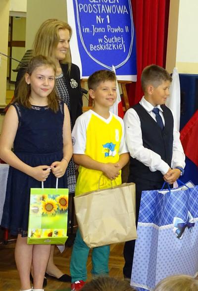Rada Rodziców postanowiła nagrodzić uczniów, którzy dzięki swojemu zachowaniu zasłużyli na uznanie. W maju br. po raz pierwszy można było złożyć wniosek o przyznanie honorowego tytułu „Bohater Szkoły”. Nominację mogli złożyć uczniowie, nauczyciele, rodzice, samorząd uczniowski lub pracownicy administracji Szkoły. Do sekretariatu szkoły wpłynęły 3 kandydatury (Pawła Pochopnia, Barbary Sowy i Wojciecha Sajewicza). Każdy z nominowanych uczniów wykazał się postawą godną do naśladowania. Wyboru „Bohatera Szkoły” dokonała Kapituła, której skład stanowi Rada Rodziców. Jury postanowiło, że tegorocznym Bohaterem Szkoły zostanie Paweł Pochopień. Uczeń klasy IV b otrzymał honorowy tytuł z uwagi na zdarzenie, które miało miejsce na Miejskim Stadionie Sportowym podczas odbywających się coroczne wiosennych biegów przełajowych. Paweł wraz z kolegami swojej kategorii wiekowej brał udział w zawodach. Biegł na czołowej pozycji, kiedy zauważył, że kolega z jego klasy został potrącony przez innego biegacza. „Bohater”, nie wahając się, natychmiast zrezygnował z zajęcia wysokiego miejsca , pomógł wstać koledze i wspólnie ukończyli bieg. Warto wspomnieć, że Paweł to chłopiec, który na co dzień swoją postawą ucznia i kolegi jest wzorem dla innych. Zawsze kulturalny, koleżeński i empatyczny w pełni zasłużył na tytuł bohatera szkoły.