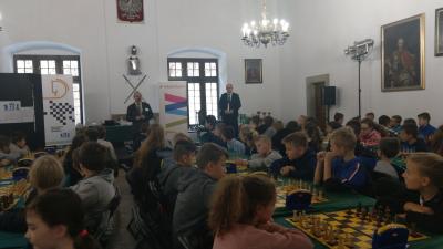 Sala Rycerska Małego Wawelu to wręcz wymarzona sceneria szachowych rozgrywek, która przywołuje na myśl intelektualne boje, toczone przed laty w zabytkowych komnatach najsłynniejszych władców. W tej przepięknej scenerii w dniu 24 października 2018 r. odbył się Turniej szachowy szkół podstawowych „Amatorska Liga Dziecięca powiatu suskiego” w ramach projektu Małopolskiego Związku Szachowego „Małopolscy Mistrzowie w Szachach”. Projekt realizowany jest przy wsparciu finansowym Województwa Małopolskiego. Honorowy patronat nad Turniejem objął Burmistrz naszego miasta Pan Stanisław Lichosyt, który udostępnił Salę Rycerską, ufundował nagrody, puchary, dyplomy oraz poczęstunek dla wszystkich uczestników Turnieju.