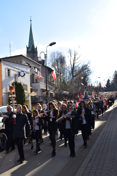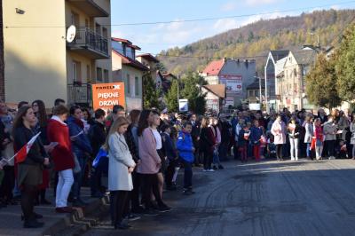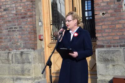 W swoim wystąpieniu Burmistrz Miasta Stanisław Lichosyt stwierdził jak ogromne wyzwanie stanęło sto lat temu przed twórcami nowej Rzeczpospolitej związane z organizacją struktur państwa, odbudową gospodarki, czy rozwiązywaniem problemów społecznych zwłaszcza, że odrodzona Polska, nie dość, że zrujnowana przez wojnę, to jeszcze stanowiła zlepek trzech różnych systemów państwowych. Podkreślił, że powinniśmy pamiętać o Tych, którym niepodległość zawdzięczamy. …„Powinniśmy im dziękować i okazywać szacunek, ale też musimy uczyć się od Nich, również na błędach, które oni sami popełniali, po to abyśmy już nigdy nie musieli przeżywać na nowo narodowych dramatów…Warto jednak zadać sobie pytanie w tym szczególnym dniu - czy rzeczywiście uczymy się na błędach ? I tu mamy problem, przecież my dzisiaj nie potrafimy nawet porozumieć się w sprawie sposobu świętowania tej pięknej rocznicy. Do głosu coraz częściej dochodzą akceptowane przez część elit, radykalne i skrajne poglądy nacjonalistyczne mylone często z patriotyzmem, dzielą nasz naród osłabiając Państwo. Są zagrożeniem dla bezpieczeństwa i wolności, którą z tak wielkim trudem udało nam się odzyskać.”