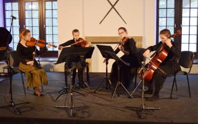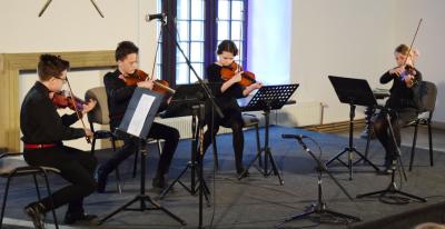 We wtorek 9 kwietnia br. Sala Rycerska wypełniła się po brzegi słuchaczami, którzy przybyli na V Szkolny Festiwal Muzyki Kameralnej. Ideą tego przedsięwzięcia jest upowszechnienie wśród uczniów muzykowania w niewielkich zespołach, zazwyczaj do 9 wykonawców. Nieliczna grupa muzyków zwykle nie potrzebuje dyrygenta. Doskonałość interpretacji zależy tylko od harmonijnej współpracy instrumentalistów. Każdy instrument ma do odegrania własną, odrębną partię, a o efekcie końcowym bardziej decyduje doskonałość. Nazwa koncertów kameralnych pochodzi z języka włoskiego "da camera", tj. do komnaty i słowo to oznaczało muzykę wykonywaną w pomieszczeniach prywatnych. Mianem muzyki kameralnej określano zarówno utwory wokalne, jak również instrumentalne – ważne było to, aby wykonywane były w komnatach, a nie w kościele bądź teatrze czy operze.