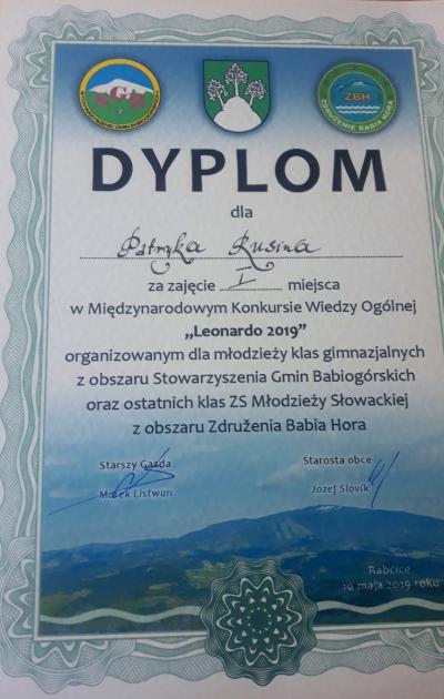 Już po raz dwudziesty trzeci młodzież gimnazjalna z 14 gmin należących do Stowarzyszenia Gmin Babiogórskich i 11 gmin słowackich zrzeszonych w Združeniu Babia Hora spotkała się podczas finału Międzynarodowego Konkursu Wiedzy Ogólnej „Leonardo 2019”. Gospodarzem tegorocznej edycji, która odbyła się w 10 maja 2019 r. była Słowacka Gmina Rabcice. Zwycięzcą został mieszkaniec naszego miasta – uczeń Szkoły Podstawowej Nr 1.