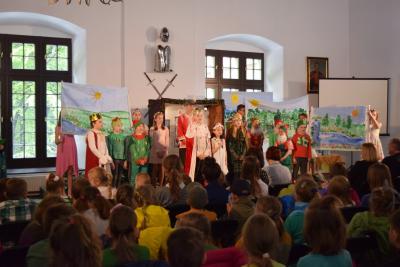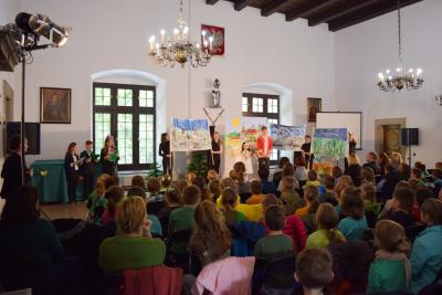 Podsumowanie turnieju oraz wręczenie dyplomów i nagród odbyło się w Sali Rycerskiej suskiego zamku, wizytówce miasta dzięki czemu wydarzenie zyskało uroczysty i podniosły charakter. Z tej okazji, uczniowie filii Szkoły Podstawowej nr 2 pod kierunkiem pani Iwony Bucały przygotowali ciekawe i pouczające przedstawienie ekologiczne pt. „Królewna Przyroda i Ekoskrzaty”. Przedstawienie było świetnie przygotowane, a uczniowie swoje role odegrali jak profesjonalni aktorzy. Młodzi artyści zostali nagrodzeni gromkimi brawami.