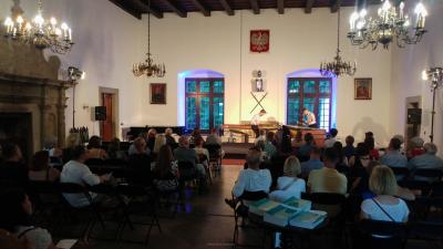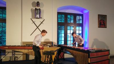 Koncert duetu Marimbazzi został zorganizowany w ramach tegorocznej, siódmej edycji Emanacji - Międzynarodowego Festiwalu Muzyki, którego głównym organizatorem jest Europejskie Centrum Muzyki Krzysztofa Pendereckiego w Lusławicach. Duet Marimbazzi to zespół składający się z dwóch młodych i utalentowanych perkusistów - Pawła Dyyaka oraz Jakuba Kołodziejczyka, którzy w ramach festiwalu wystąpili w niedzielny wieczór w Sali Rycerskiej suskiego zamku. Kompozycje składające się na program niedzielnego koncertu stanowiły nie lada gratkę dla miłośników muzyki klasycznej i współczesnej, ukazywanej w nieco innym wymiarze. Marimba to instrument pochodzący z Afryki, składa się z dwóch klawiatur – rzędów drewnianych klepek. Poniżej znajdują się rury rezonansowe. Gra się na niej pałkami, często trzymając po dwie w każdej ręce, co pozwala wydobyć jednocześnie cztery dźwięki. Taka gra, szczególnie w duecie wymaga doskonałej techniki i koordynacji, ale za to wygląda niezwykle widowiskowo. Artyści z niespotykaną lekkością poradzili sobie z trudnymi, stawiającymi wysokie wymagania techniczne i brzmieniowe utworami prezentując bogactwo i specyfikę brzmienia marimby, a przy tym w wyjątkowy sposób potrafili przepleść i połączyć dźwięki dwóch instrumentów w spójna całość.