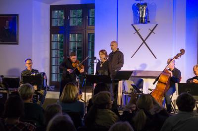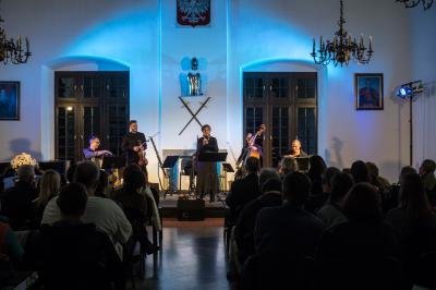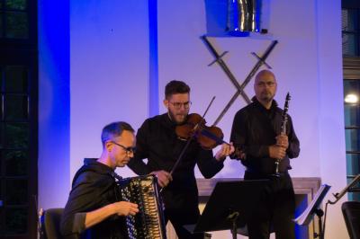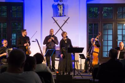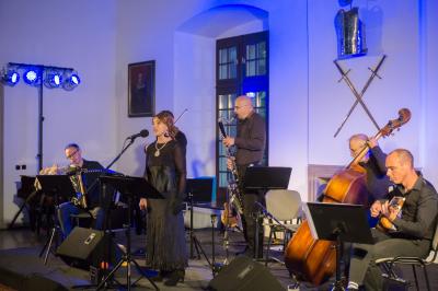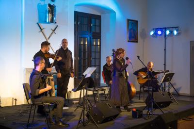 W piątkowe popołudnie 27 września w Sali Rycerskiej koncert francuskiej grupy Est-Ouest (Wschód-Zachód) zwieńczył tegoroczny cykl wrześniowych spotkań z muzyką na zamku. Zespoł przybył do Suchej Beskidzkiej prosto z Szampanii, a jego założycielką i zarazem wokalistką jest pochodząca z Katowic, mieszkająca od 20 lat we Francji, Polka Grażyna Pawlikowski. Nawiązując do nazwy i tradycji historycznej prowincji można by rzec, że piątkowy koncert, który był nie lada muzyczną ucztą, uświetnił finał tegorocznych Dni Muzyki na Zamku, niczym najlepszy trunek, produkowany niegdyś przez królewskie winnice francuskiej Szampanii. Bogaty bukiet dźwięków i tonów, współbrzmiących ze sobą intrumentów m.in akordeonu, skrzypiec, gitary, kontrabasu, mandoliny i klarnetu oraz charyzmatyczna osobowość wokalistki - tym razem to nie zmysł smaku, a słuch pozwalał degustować bogactwo kultury europejskich regionów, przenosząc widownię myślami na paryskie uliczki, na Bałkany, do górzystej Serbii, a także w Beskidy. Wysublimowany repertuar koncertu, w którym znalazły się zarówno utwory polskiej piosenki literackiej, kompozycje wywodzące sie z kultury francuskiej prezentowane przez wybitnych artystów francuskiej sceny, a także pieśni wywodzące się z tradycji regionów Francji, Serbii, kultury cygańskiej i żydowskiej tworzyły ponad godzinną, muzyczną opowieść o miłości, tęsknocie, przemijającej młodości i przywiązaniu do miejsc, z których pochodzimy i w których mieszkamy.