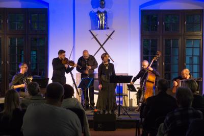 Zespół muzyczny Est-Ouest /Wschód Zachód wystąpił w składzie Grażyna Pawlikowski-wokal, Bogusław Zięba- akordeon, Aurélien Quignard –skrzypce i mandolina, Ben Benos– gitara, Serge Mouraux – kontrabas, Jean Louis Charlas – klarnet. (GW)