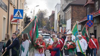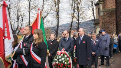 W Suchej Beskidzkiej miejskie Obchody Święta Niepodległości rozpoczęły się przed południem na cmentarzu parafialnym od złożenia kwiatów na Kwaterze Wojskowej. Następnie uczestnicy wydarzenia udali się do kościoła pw. NNMP. Uroczysty charakter Mszy Św. w intencji Ojczyzny podkreśliła homilia ks. Wiesława Popielarczyka – proboszcza suskiej parafii oraz obecność licznych pocztów sztandarowych, reprezentowanych przez: Komendę Powiatową Policji, Komendę Powiatową Państwowej Straży Pożarnej, Zarząd Oddziału Powiatowego ZOSP RP, Ochotniczą Straż Pożarną Sucha Beskidzka Błądzonka, Ochotniczą Straż Pożarną Sucha Beskidzka Miasto, Zakład Komunalny w Suchej Beskidzkiej, Zarząd Miejski Polskiego Stronnictwa Ludowego, Polskie Towarzystwo Turystyczno – Krajoznawcze "Ziemi Babiogórskiej" Oddział w Suchej Beskidzkiej, Stowarzyszenie „Pszczelarzy „Jodła” w Suchej Beskidzkiej, Szkołę Podstawową Nr 1 im. Jana Pawła II, Liceum Ogólnokształcące Nr 1 im Marii Skłodowskiej – Curie, Zespół Szkół im. Walerego Goetla oraz Zespół Szkół im. Wincentego Witosa. Po Mszy Świętej przedstawiciele samorządu, instytucji i stowarzyszeń oraz licznie zebrani mieszkańcy miasta w asyście pocztów sztandarowych wzięli udział w uroczystym przemarszu prowadzonym przez Miejską Orkiestrę Dętą na ulicę Józefa Piłsudskiego, aby złożyć wieńce i kwiaty pod tablicą upamiętniającą postać Marszałka i oddać hołd tym, którzy walczyli o naszą niepodległość. Wartę Honorową w tym miejscu oraz na suskim cmentarzu przy pomniku poległych żołnierzy pełniła Jednostka Strzelecka – Pluton Sucha Beskidzka oraz harcerze z Drugiego Szczepu Drużyn Harcerskich „Horyzont” w Suchej Beskidzkiej. W swoim wystąpieniu Burmistrz Miasta Stanisław Lichosyt stwierdził, że …nasz udział w uroczystości jest potwierdzeniem wielkiego szacunku i wdzięczności wobec naszych rodaków, którzy walczyli o wolną, niepodległą Ojczyznę…(treść wystąpienia burmistrza Suchej Beskidzkiej).