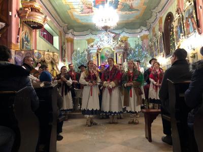 Okres świąteczny był intensywnym czasem dla suskich zespołów i kapel regionalnych. Obok występów podczas organizowanych tradycyjnie w pierwszych tygodniach Nowego Roku w naszym mieście wydarzeń, jak Orszak Trzech Króli czy Góralskie Kolędowanie, tym razem radosna babiogórska kolęda dotarła również dalej poza granice Suchej Beskidzkiej m.in. do Gliwic. W ostatnią niedzielę stycznia (26.01.) Zespół Regionalny „Ziemia Suska” z towarzyszącą mu kapelą „Mała Ziemia Suska” odwiedził gliwicki oddział Narodowego Instytutu Onkologii oraz wystąpił w Kościele Wniebowzięcia Najświętszej Maryi Panny w Gliwicach.