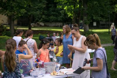 W niedzielę bawiliśmy się na Festynie Folklorystycznym bo tak można nazwać przedsięwzięcie, które zostało zorganizowane w parku zamkowym pt. "Dzień z Życia Górala". Uczestnicy mieli okazję, poprzez czynny udział w warsztatach i wspólną zabawę, w atrakcyjnej i ciekawej formie poznać i poszerzyć swoją wiedzę na temat folkloru i tradycji naszego regionu. Było można spróbować swych sił w malowaniu drewnianych zabawek, którym towarzyszył pokaz rzeźby ludowej w wykonaniu instruktorów. Były zorganizowane zajęcia dla dzieci, m. in,. wykonywanie filcowych saszetek zdobionych parzenicą babiogórską. Wspólnie z zespołem regionalnym można było zrobić kwiaty z krepiny, a razem z ŻyWą Pracownią rzemiosła i designu z Krakowa, własnoręcznie stworzyć tace z wikliny. Aktywności warsztatowe przeplatane zostały występami Zespołu Regionalnego oraz Kapeli Mała Ziemia Suska. Ciekawostki z życia Górali Babiogórskich przybliżył publiczności prowadzący wydarzenie Piotr Jezutek, natomiast babiogórscy zbójnicy przy ognisku i podczas pokazu pieczenia podpłomyków prezentowali ponadczasowe opowieści i legendy wywodzące się z regionu Babiej Góry.Regionalne przysmaki w postaci smalcu ze skwarkami, oscypka, żurku czy kołaczy, przygotowane zostały przez miejscowe Stowarzyszenie Skarbiec Suski. Pogoda dopisała, było ciepło i słonecznie, więc i nie dziwi fakt, że niektórzy rozłożyli koce na trawie i delektowali się swojskim klimatem niedzielnego festynu.
