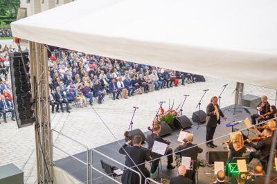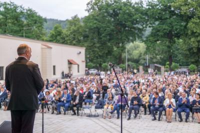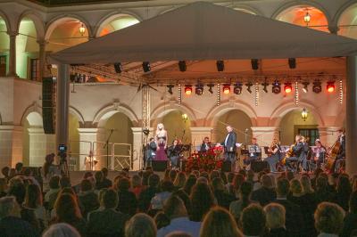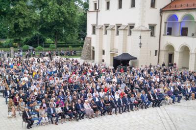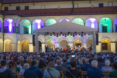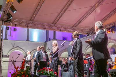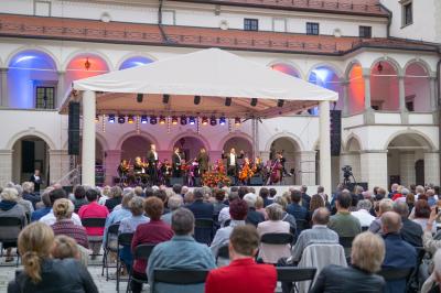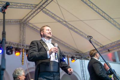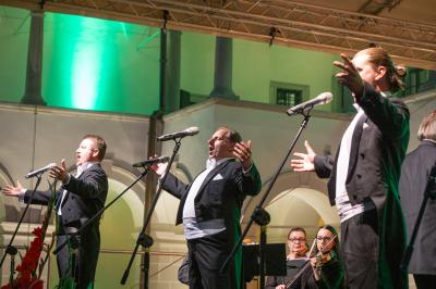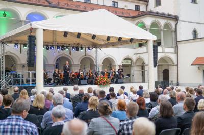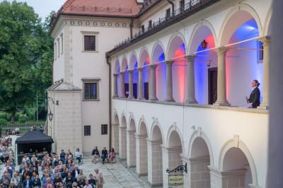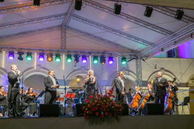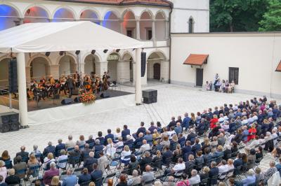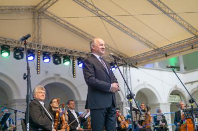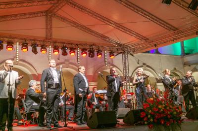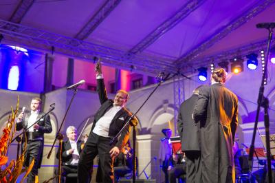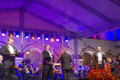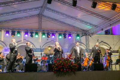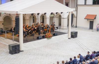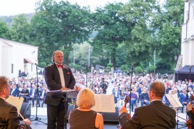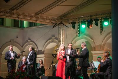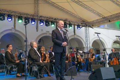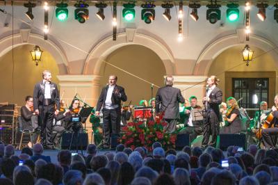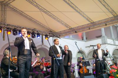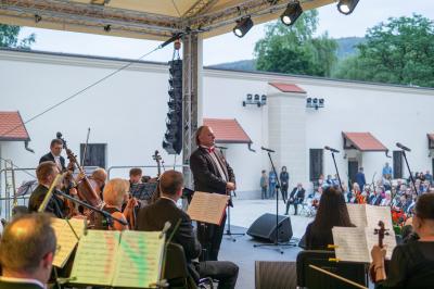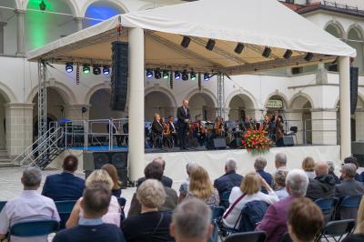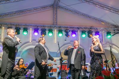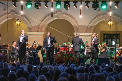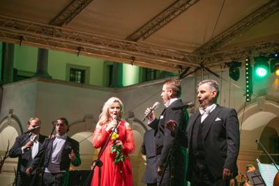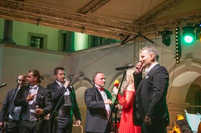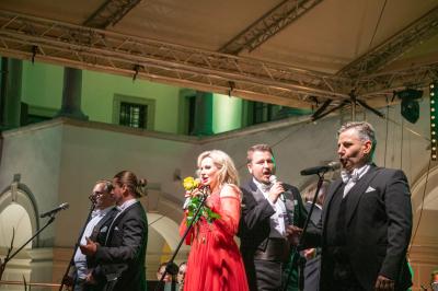Obchody 125 - lecia rozpoczęły się w miniony piątek 2 lipca 2021 w sali widowiskowej Centrum Kultury i Filmu, gdzie odbyła się Uroczysta Sesja Rady Miasta z okazji jubileuszu nadania praw miejskich. Nazajutrz, 3 lipca czyli dokładnie w tym dniu, w którym przed 125 laty na mocy tzw. Ustawy Gminnej z 1896 roku Sucha otrzymała prawa miejskie, zorganizowany został bezpłatny koncert, dla mieszkańców miasta i gości zaproszonych przez burmistrza Suchej Beskidzkiej Stanisława Lichosyta. Najsłynniejsze walce, polki, arie i duety rodem z Wiednia, miasta będącego swoistym centrum muzyki klasycznej, uznawanym przez wielbicieli tego gatunku za jej światową stolicę, zabrzmiały w otoczeniu murów renesansowego zamku suskiego dostarczając zebranej publiczności niezapomnianych wrażeń. Sobotni koncert otworzył burmistrz Stanisław Lichosyt który przywitał licznie zgromadzoną publiczność, zapraszając do wspólnego świętowania 125 urodzin miasta. Nim na scenie pojawili się pierwsi soliści, polką Éljen a Magyar Johanna Straussa koncert zainaugurowała dwudziestoosobowa orkiestra pod dyrekcją Wojciecha Mrozka, która towarzyszyła wokalistom. Program artystyczny był muzyczną ucztą i stanowił mieszankę klasycznych utworów operowych, przeplataną znanymi i lubianymi ariami operetkowymi oraz pieśniami neapolitańskimi. Sylwester Targosz-Szalonek, Aleksander Kruczek, Sławomir Naborczyk zaprezentowali wirtuozersko partie tenorskie występujące w najsłynniejszych utworach tego gatunku takie jak: O Surdato N’namorato, Wielka sława to żart, O sole mio, Funiculi, Funicula czy Caruso. Wieczorny koncert wkomponowany został w scenerię odrestaurowanego zamku suskiego, bowiem artyści wykonywali również utwory poza sceną, na zamkowych krużgankach, co w połączeniu z odpowiednią oświetleniem nadało przedsięwzięciu niepowtarzalnego klimatu, przenosząc publiczność w nastrój rodem z najsłynniejszych scen operowych i teatrów muzycznych. Odpowiedni czas rozpoczęcia wydarzenia zaowocował barwną grą świateł na pograniczu dnia i nocy. Obok trójki tenorów, w zespole śpiewaków na zamkowej estradzie wystąpił również Andrzej Witlewski, absolwent Akademii Muzycznej w Poznaniu i solista Opery Wrocławskiej, który swym bas-barytonowym głosem zaprezentował publiczności niezapomniane utwory takie jak: Aria Tewiego z musicalu Skrzypek na dachu czy rozsławioną przez Franka Sinatrę piosenkę My Way. Z kolei sopranistka Edyta Piasecka w sobotni wieczór wcieliła się m.in. w rolę Giuditty z komedii muzycznej Franza Lehára oraz Hrabiny Ilony wykonując arię „Kiedy Skrzypki Grają” z operetki Cygańska Miłość.